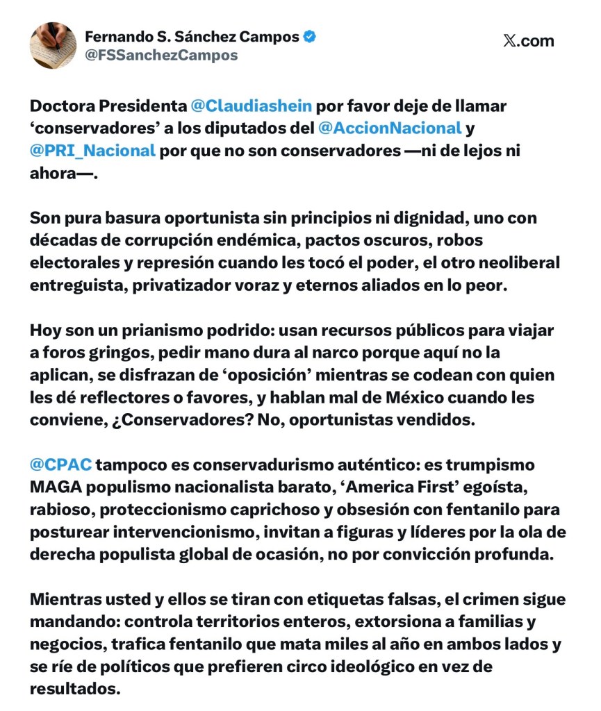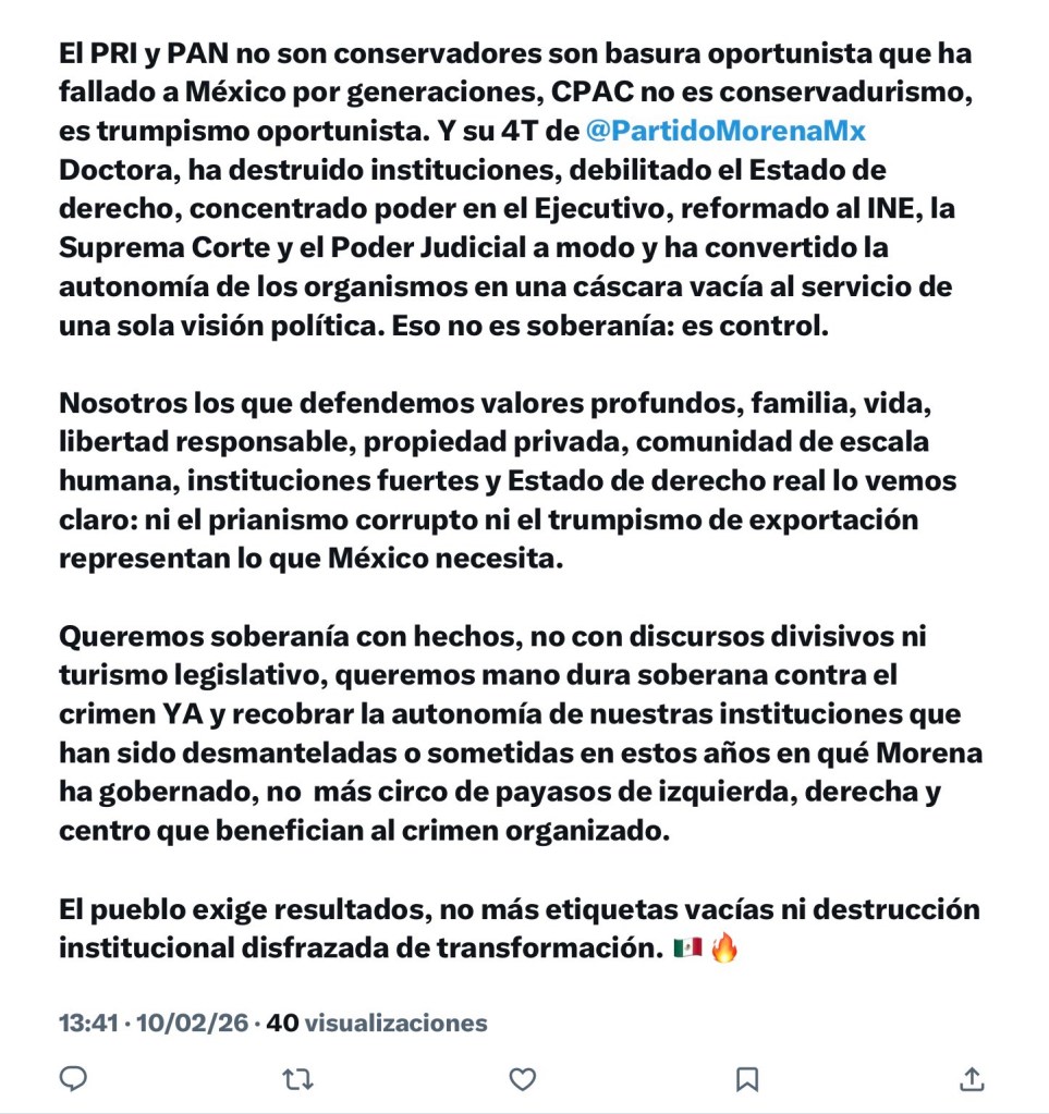 Porque México no merece más circo. México merece verdad. México merece soberanía. México merece seguridad. México merece conservadurismo auténtico.
